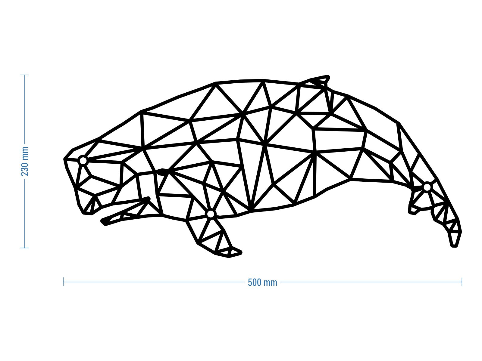Metalowe obrazy geometryczne stanowią oryginalną ozdobę ściany, fantastycznie prezentującą się w nowoczesnych, skandynawskich oraz industrialnych aranżacjach wnętrz. Wycięte są laserowo z blachy 2 mm, następnie malowane farbą proszkową, strukturalną matową. Dzięki temu dekoracja zachowuje swoją trwałość i wyróżnia się dużą odpornością. Pomalowana powłoka jest równa i jednorodna. Pozwala to na zachowanie estetycznego wyglądu znacznie dłużej, niż w przypadku tradycyjne metody pokrywania powierzchni farbą.