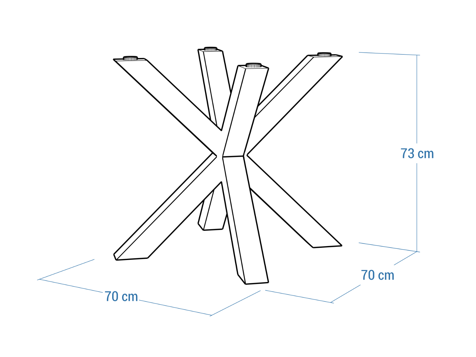 Nogi do stołu o efekcie chrom są dostępne w czterech rozmiarach: S, M, L oraz XL. Co więcej, w ofercie posiadamy także podstawę Pająk Heavy Chrom wykonaną z szerszego profilu stalowego (100×100 mm).