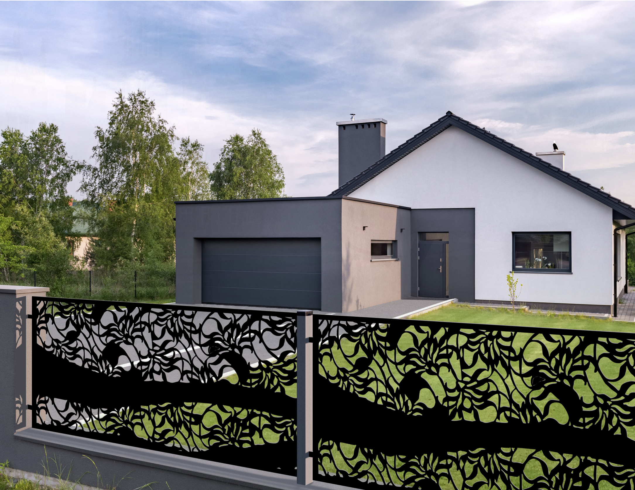 Oryginalny i efektowny panel ogrodzeniowy wycinany techniką laserową. Nowoczesne i łatwe w montażu rozwiązanie do ogrodzenia wokół domu i firmy. Nasze panele mogą być wykorzystane przede wszystkim jako furtka, brama, przęsło czy balustrada.
