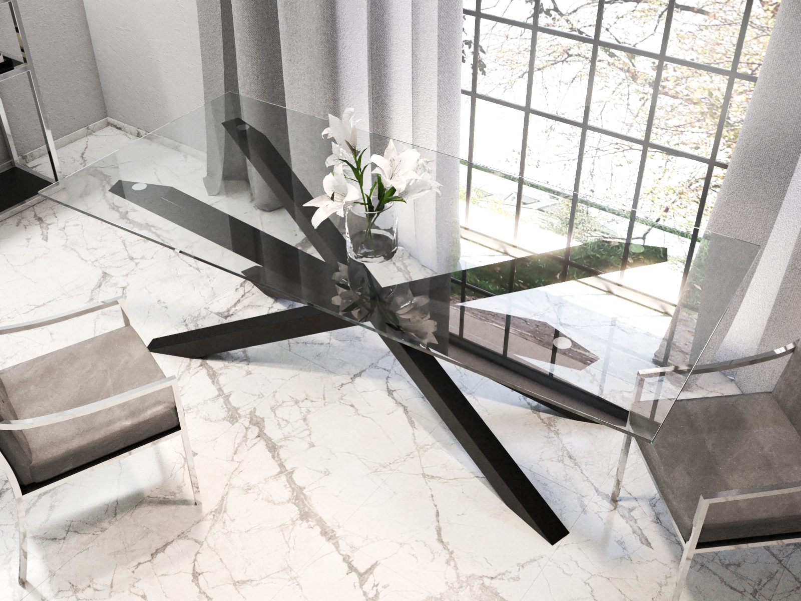 - Wszechstronne zastosowanie. Ten model, wykonany ze stali, został zaprojektowany pod blat szklany lub kamienny o wymiarach od 90 cm do 120 cm szerokości oraz od 220 cm do 290 cm długości. Dzięki temu możesz zdecydować się na taki rozmiar jaki najbardziej Ci odpowiada! Co więcej, to świetne rozwiązanie nie tylko do domu, ale również do restauracji lub kawiarni.