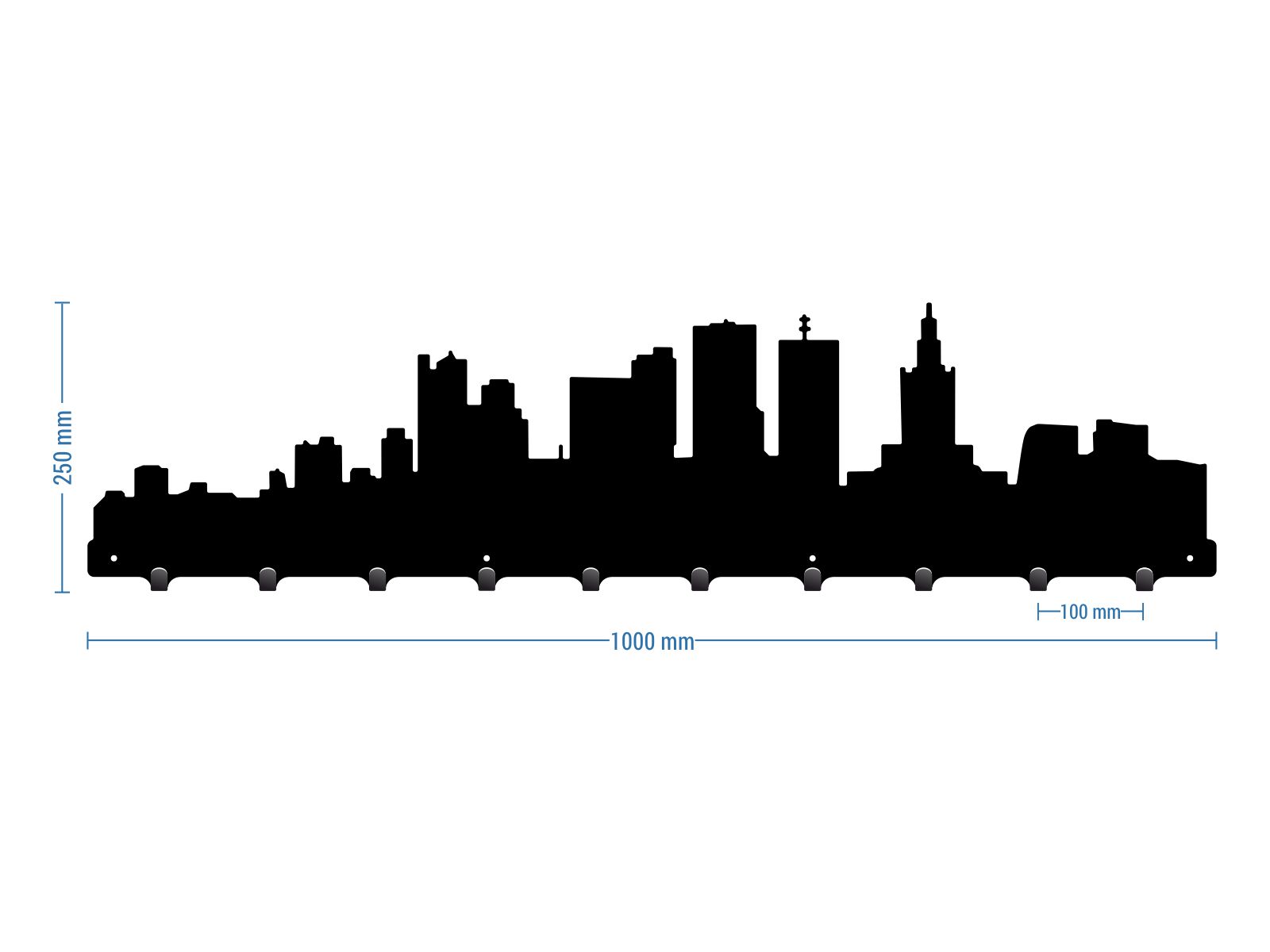 Metalowy, wysokiej jakości wieszak naścienny o udźwigu pojedynczej zawieszki 30 kg. Wieszak jest precyzyjnie wyciętym kawałkiem stali konstrukcyjnej DC 01, o grubości 2mm.