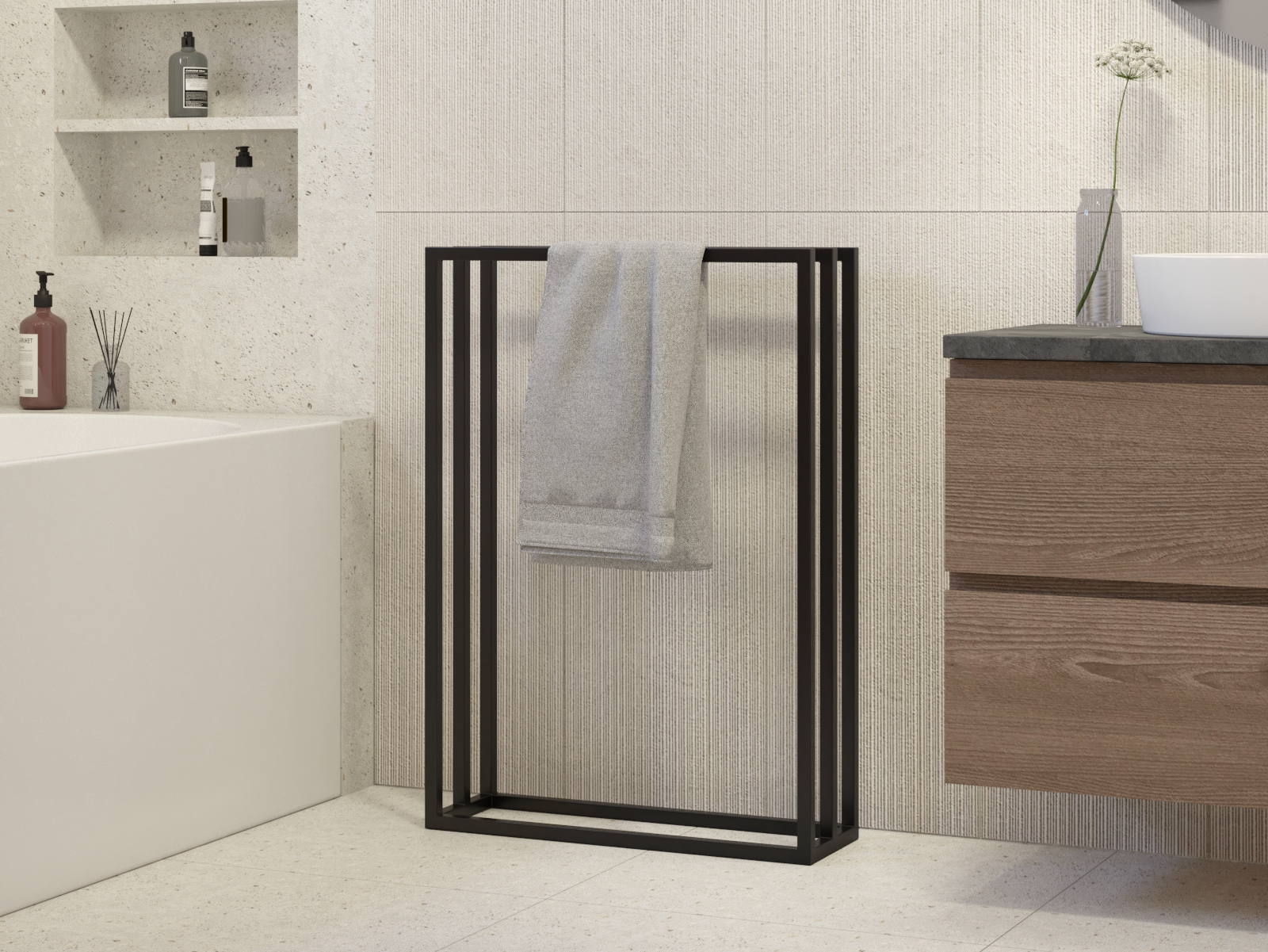 Wieszak na ręczniki stojący metalowy L
